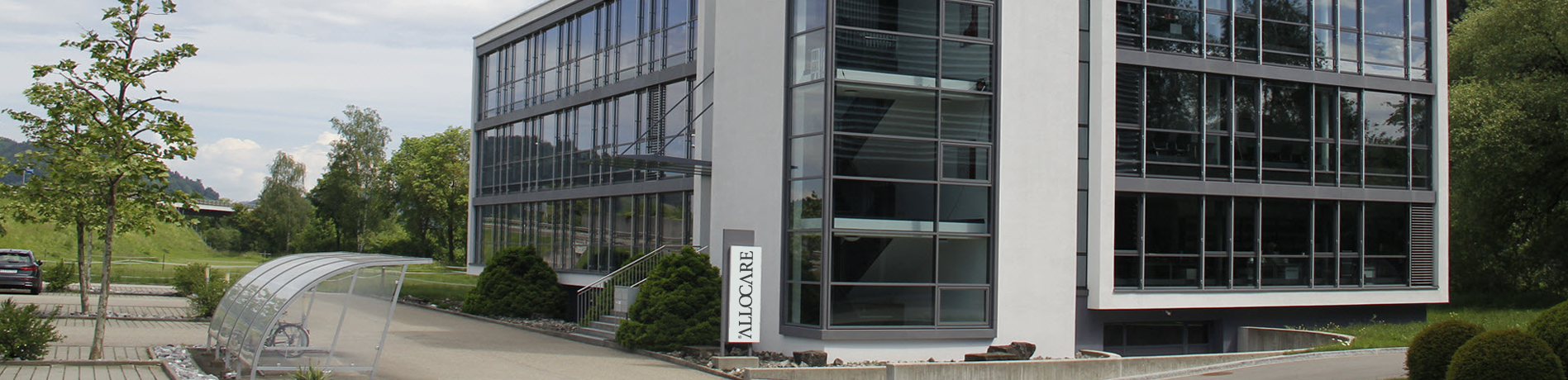 Heiri Grüter (1962) lebt und arbeitet in Willisau. Seine speziell für Allocare geschaffene Bilderserie nimmt das Allocare CI/CD künstlerisch auf. Im verglasten Treppenhaus entfaltet sie ihre Wirkung über zwei Stockwerke nach innen und ebenso nach aussen.