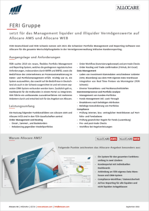 In the factsheets you will find case studies of the use of Allocare AMS and Allocare WEB by wealth & asset managers.